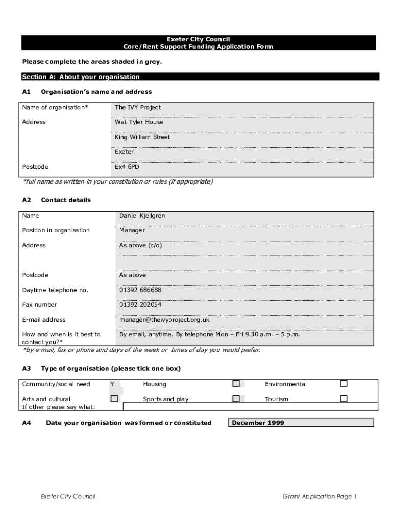 Peter City Council Core×Rent Support Funding Application Form Please complete the areas shaded in gray. Section A: About your organization A1Organisations name and addressable of organization×The