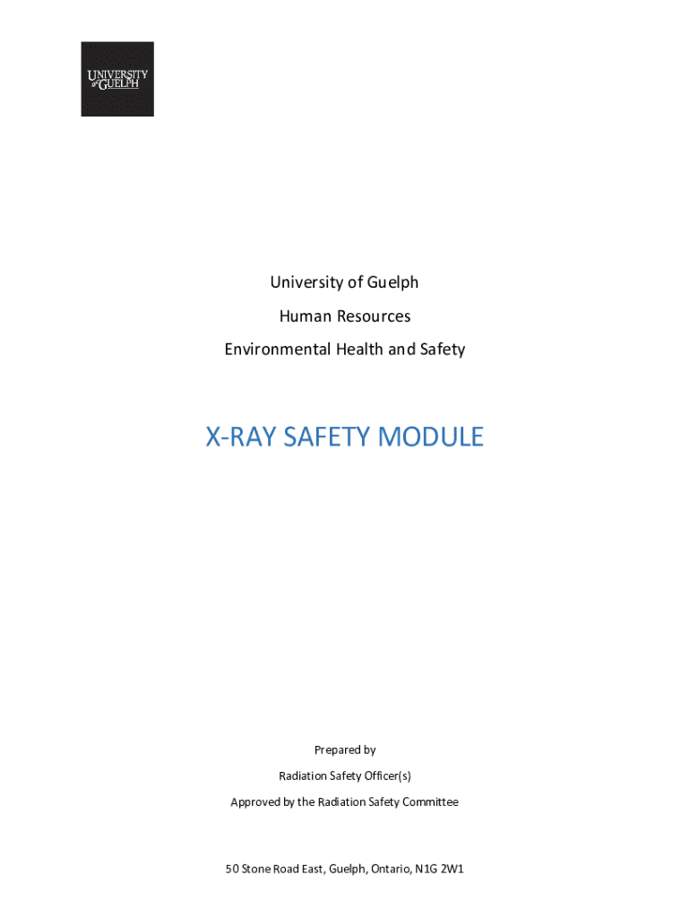 University of Guelph Human Resources Environmental Health and SafetyXRAY SAFETY MODULEPrepared by Radiation Safety Officer’s) Approved by the Radiation Safety Committee50 Stone Road East, Guelph,