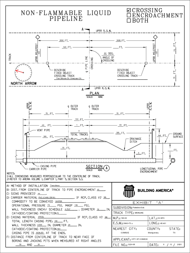 Appendix A August 14, 2020, Folder: 0322408 RAFAEL BARRANQUILLA CITY OF CONROE 300 WEST DAVIS, STE 530 CONROE TX 77301Re:Proposed Underground 12 Inch PVC Pipeline Encased In A 20-Inch Steel Pipe For