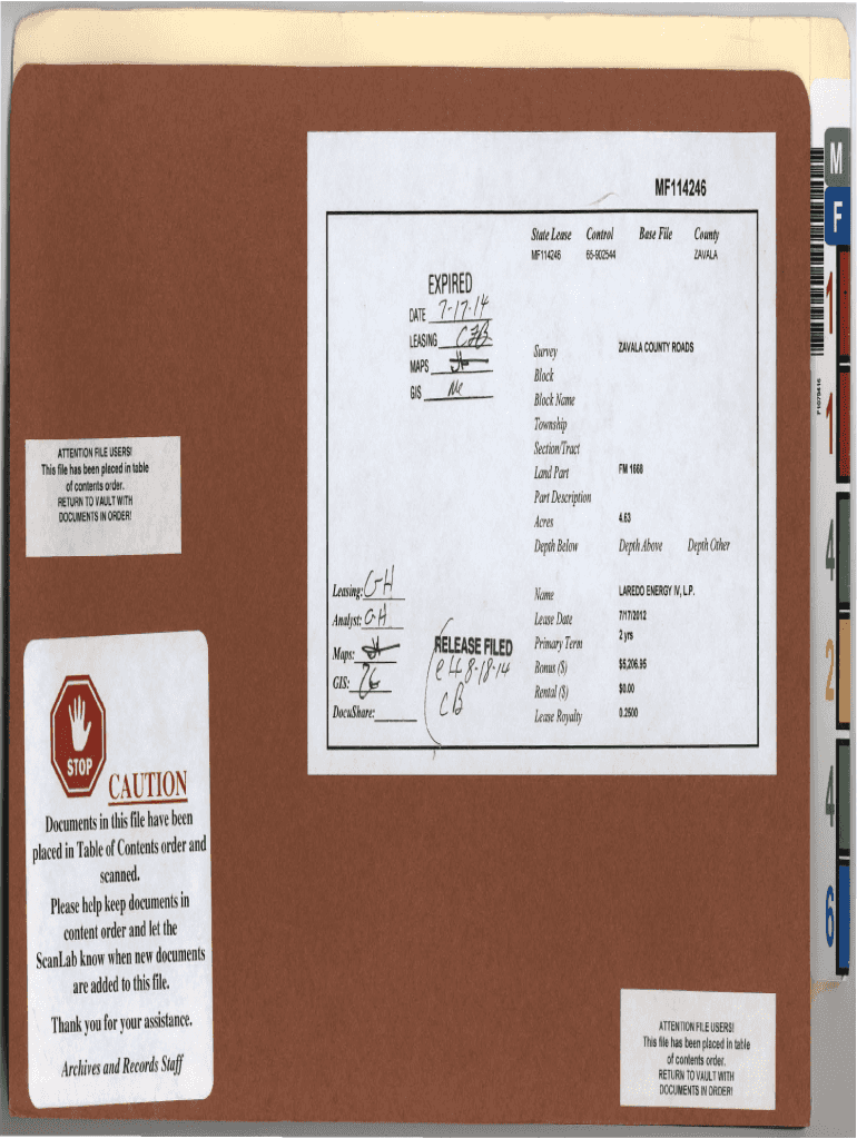 MF114246 State LeaseControlMF11424665902544Base FileCounty ZAVALAEXPIRED DATE 7\' :7 f t LEASING __... J, Co:::. JCI!tar...4,.::...MAPS \'\'):. .× w _ GIS _ __. A::.;;.\'attention FILE USERS! This