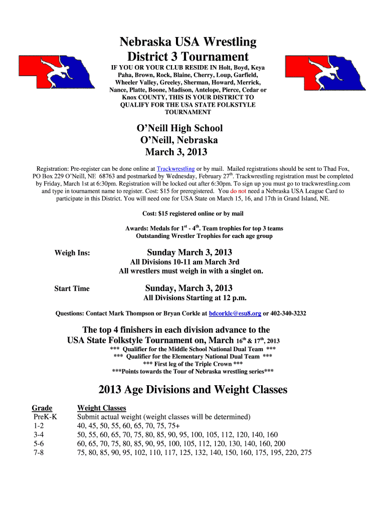 Get the free Nebraska USA Wrestling District 3 Tournament - Trackwrestling