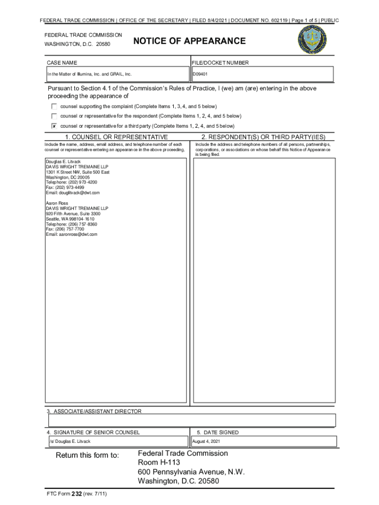 FEDERAL TRADE COMMISSION | OFFICE OF THE SECRETARY | FILED 8×4/2021 | DOCUMENT NO. 602119 | Page 1 of 5 | PUBLICFEDERAL TRADE COMMISSION WASHINGTON, D.C. 20580NOTICE OF APPEARANCE CASE NAMEABLE×DOCKET