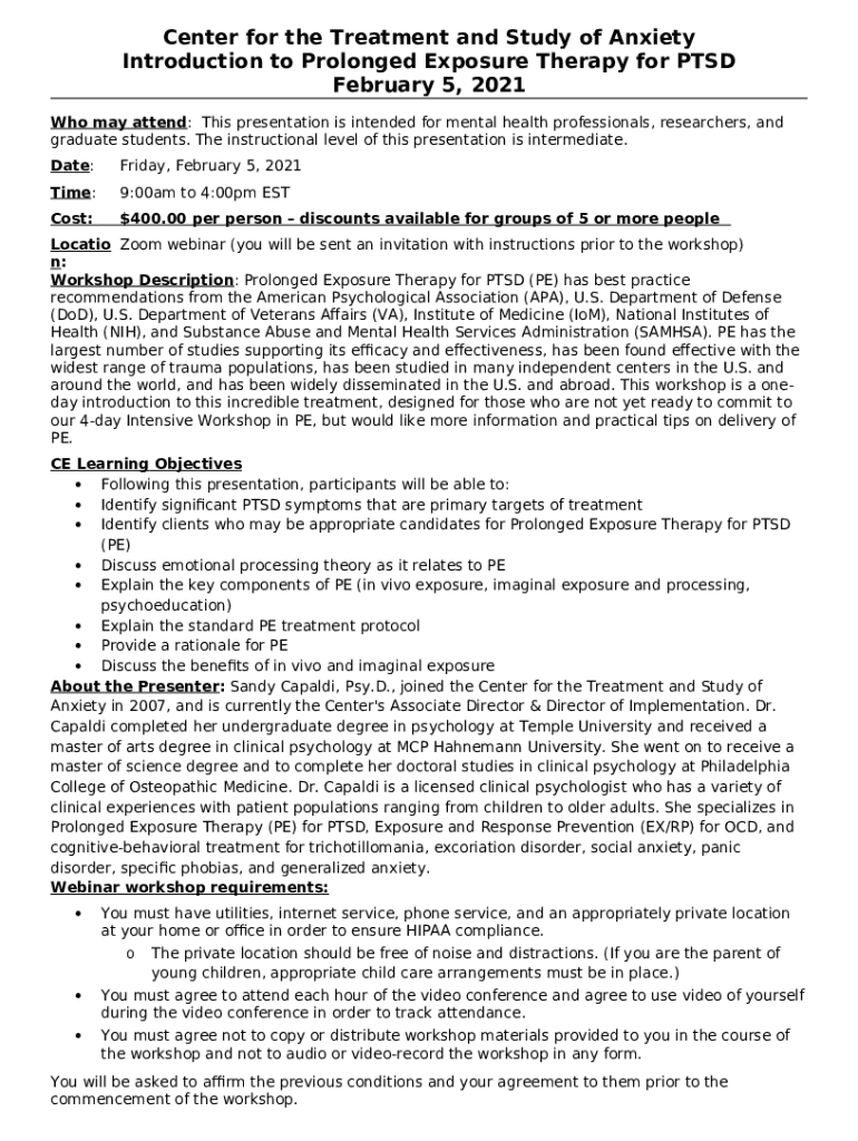 The www.med.upenn.eductsatrainingopportunitiesTraining OpportunitiesCenter for the Treatment and Study ... is a Word document that can be completed and signed for certain purpose. In that case, it is provided to the actual addressee in order to provide some details of certain kinds. The completion and signing may be done in hard copy or using an appropriate tool e. g. PDFfiller. Such applications help to fill out any PDF or Word file without printing them out. While doing that, you can customize it for your requirements and put a legal electronic signature. Once finished, the user ought to send the www.med.upenn.eductsatrainingopportunitiesTraining OpportunitiesCenter for the Treatment and Study ... to the respective recipient or several recipients by email or fax. PDFfiller offers a feature and options that make your Word form printable. It includes various options when printing out appearance. No matter, how you send a form after filling it out - physically or electronically - it will always look professional and organized. In order not to create a new writable document from the beginning every time, make the original Word file into a template. After that, you will have a rewritable sample.