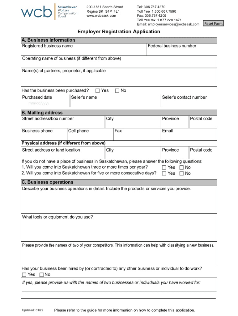 2001881 Start Street Regina SK S4P 4L1 www.wcbsask.comClick on any field to start editing. Tel: 306.787.4370 Toll free: 1.800.667.7590 Fax: 306.787.4205 Toll free fax: 1.877.220.1671 Email: employer