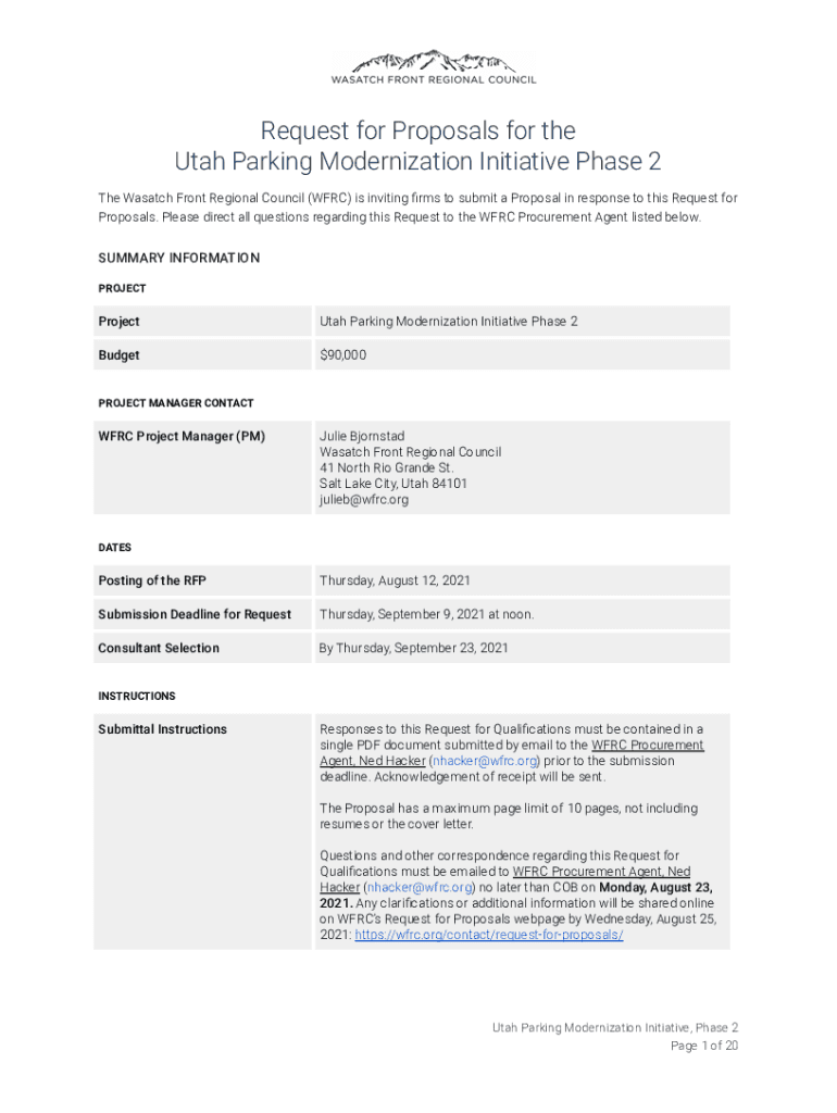Get the free narc.org08ParkingModernizationPhase2RFPUtah Parking Modernization Initiativ e Phase ...