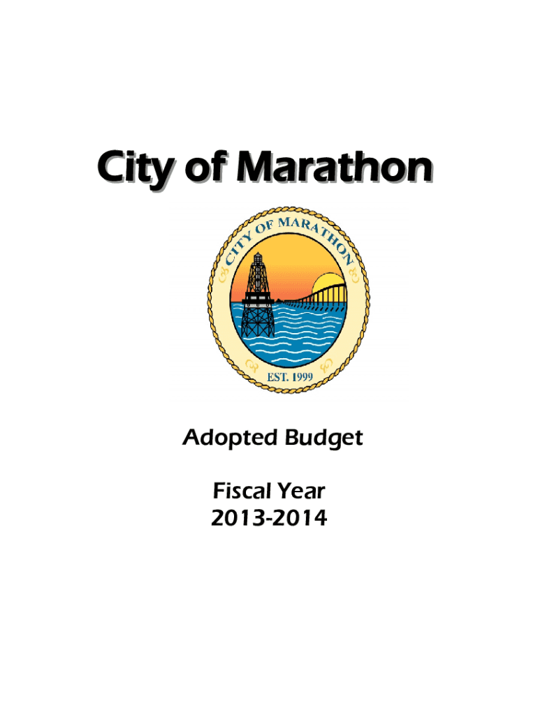 City of MarathonAdopted Budget Fiscal Year 20132014General Fund Revenue Summary Fiscal Year 20132014Category/ProgramActual Revenue FY 12Adopted Budget FY 13General Fund:Actual Revenue FY13 Estimated
