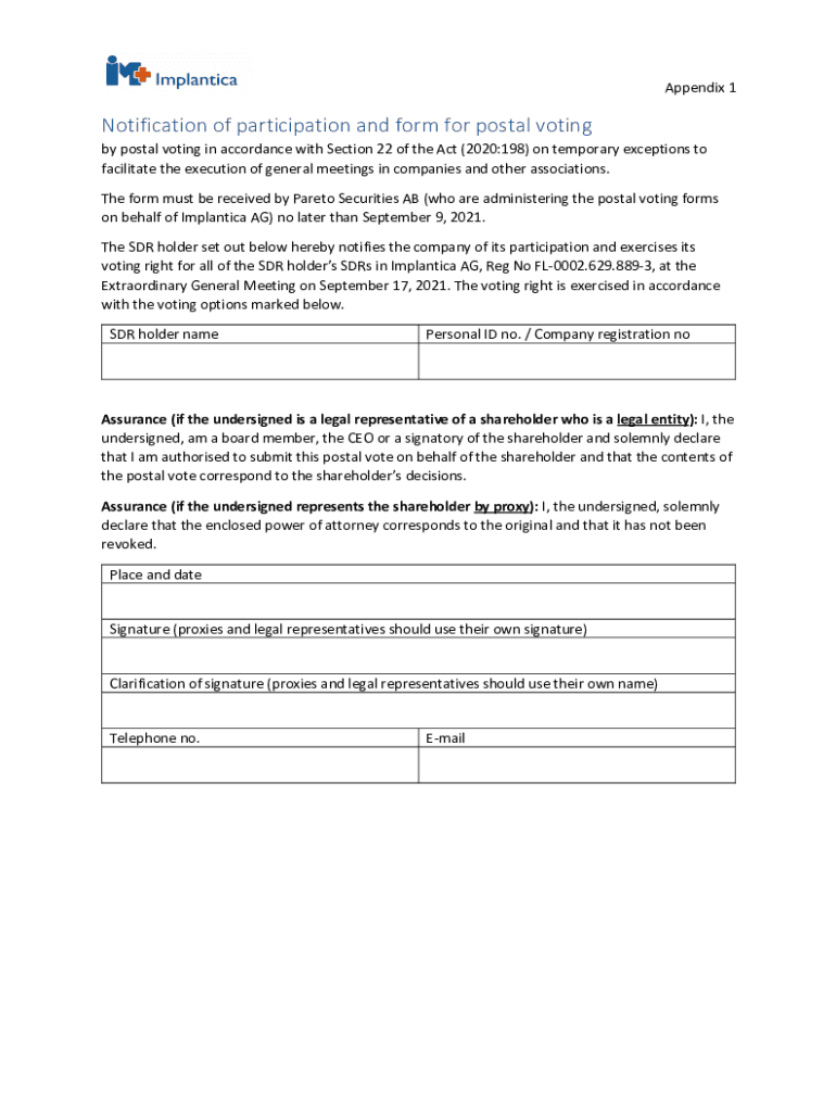 Get the free Notification of participation and form for postal votingImplantica AG20210917 copy.docx