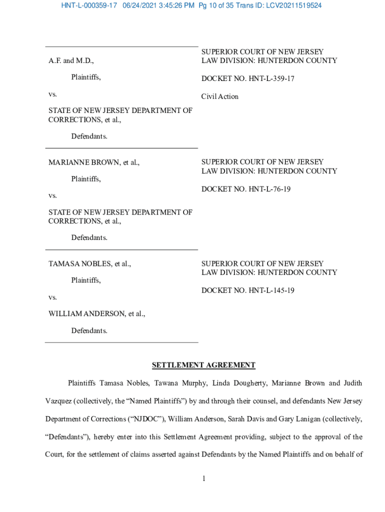 HNTL00035917 06/24/2021 3:45:26 PM Pg 10 of 35 Trans IDs: LCV20211519524SUPERIOR COURT OF NEW JERSEY LAW DIVISION: HUNTER DON COUNTY. F. and M.D., Plaintiffs, DOCKET NO. HNTL35917vs. Civil ActionSTATE