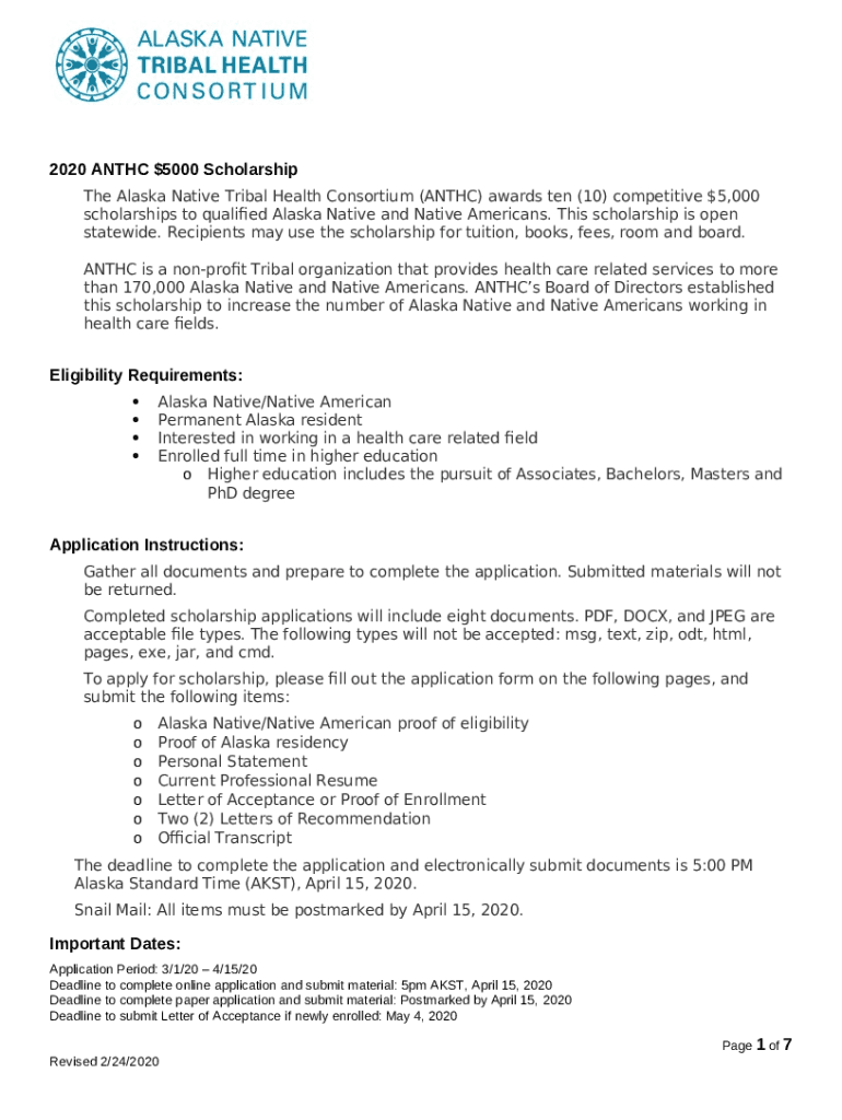 What is anthc.organthc-board-scholarshipANTHC Board of Directors $5,000 Scholarship Application now ... Form?