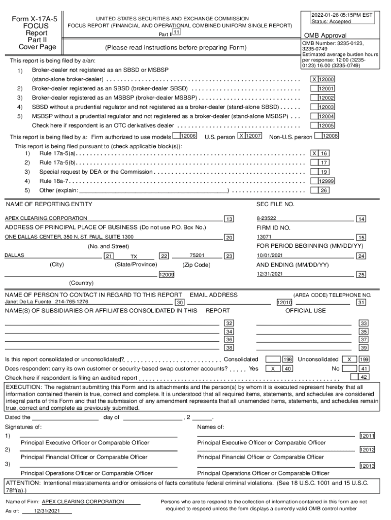 Form X17A5 FOCUS Report Part II Cover Page20220126 05:15PM EST Status: AcceptedUNITED STATES SECURITIES AND EXCHANGE COMMISSION FOCUS REPORT (FINANCIAL AND OPERATIONAL COMBINED UNIFORM SINGLE REPORT)