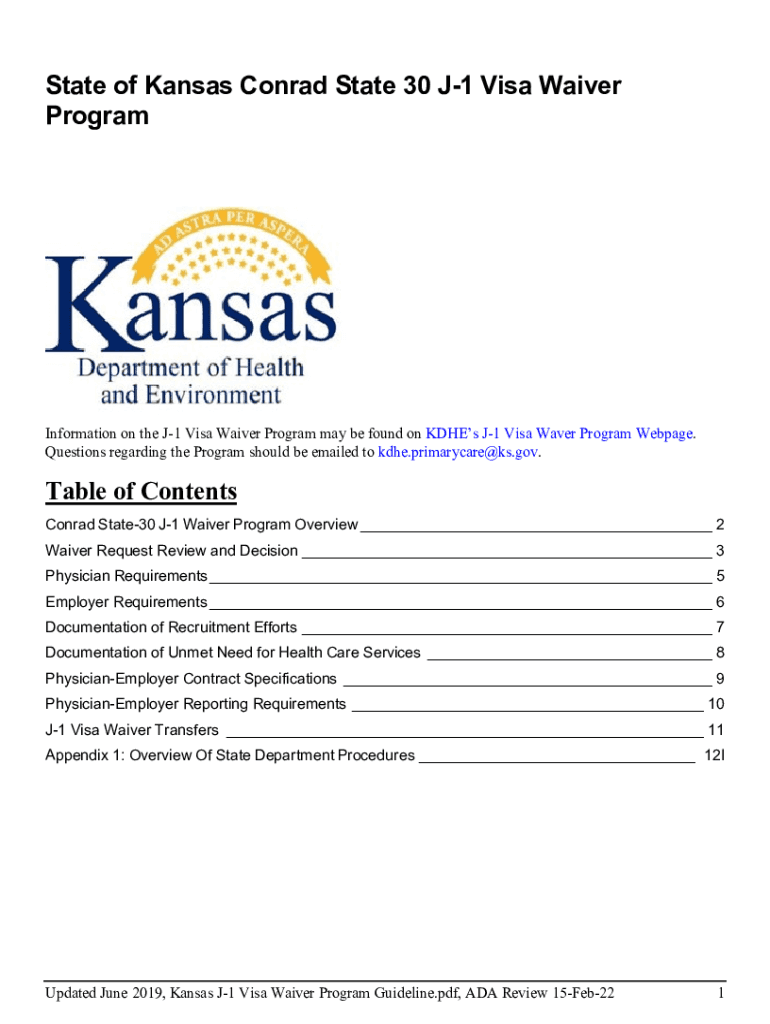 State of Kansas Conrad State 30 J1 Visa Waiver ProgramInformation on the J1 Visa Waiver Program may be found on Does J1 Visa Waver Program Webpage. Questions regarding the Program should be emailed
