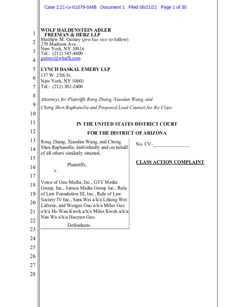 Case 2:21cv01079SMB Document 1 Filed 06/21/21-Page 1 of 301 2 3 4 5 6 7 8 9 10WOLF WALLENSTEIN ADLER FREEMAN & HER LLP Matthew M. Guinea (pro HAC vice to follow) 270 Madison Ave. New York, NY 10016