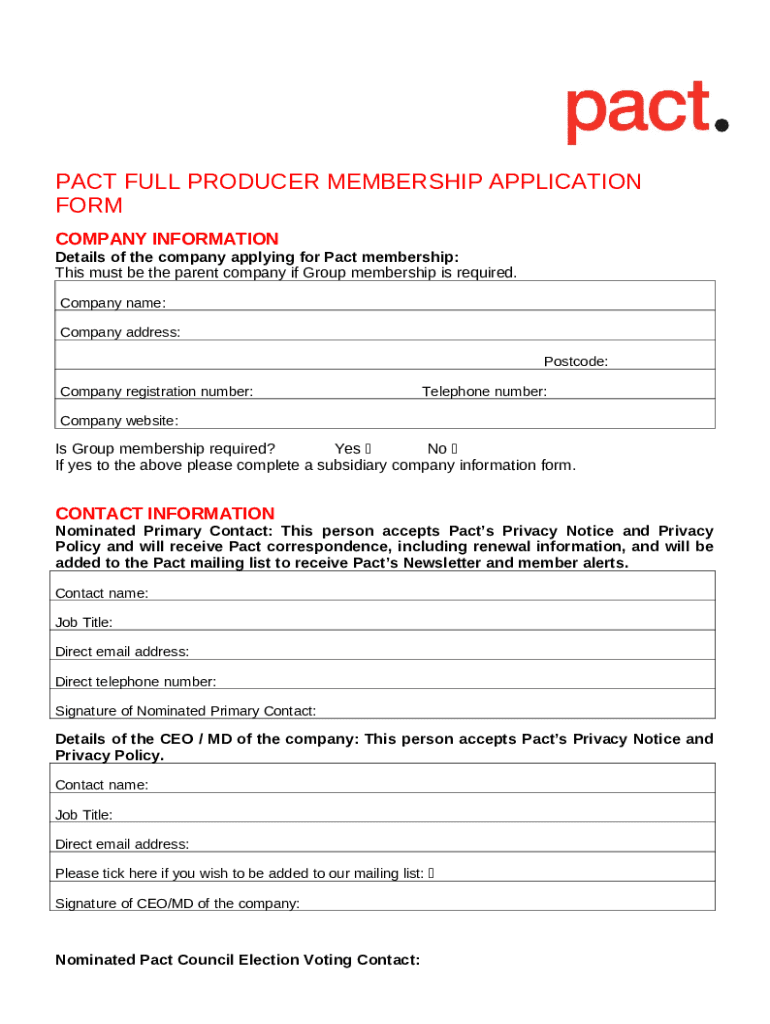 What is PACT FULL PRODUCER MEMBERSHIP APPLICATION Form?