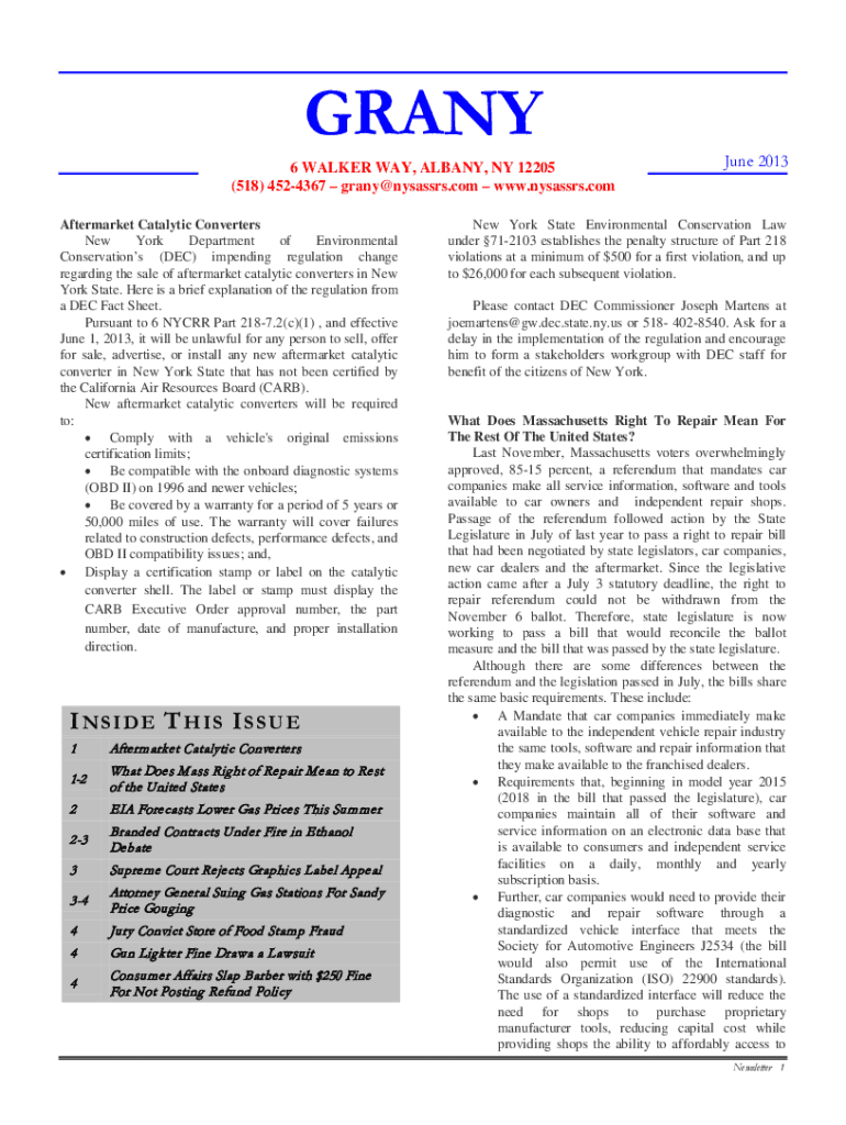 GRAND 6 WALKER WAY, ALBANY, NY 12205 (518) 4524367 grand×nysassrs.com www.nysassrs.com Aftermarket Catalytic Converters New York Department of Environmental Conservation (DEC) impending regulation
