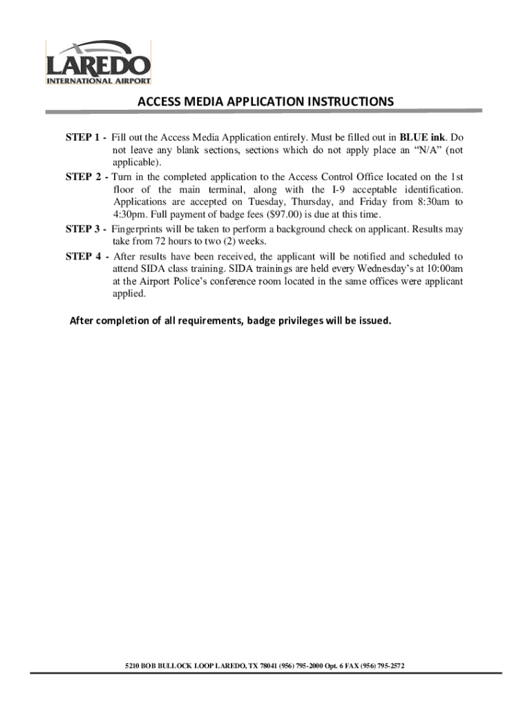 ACCESS MEDIA APPLICATION INSTRUCTIONS STEP 1 Fill out the Access Media Application entirely. Must be filled out in BLUE ink. Do not leave any blank sections, sections which do not apply place an N/A