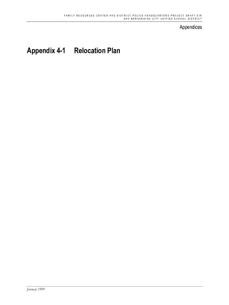 FAMILY RESOURCES CENTER AND DISTRICT POLICE HEADQUARTERS PROJECT DRAFT AIR SAN BERNARDINO CITY UNIFIED SCHOOL DISTRICTAppendicesAppendix 41January 2019Relocation PlanFAMILY RESOURCES CENTER AND DISTRICT