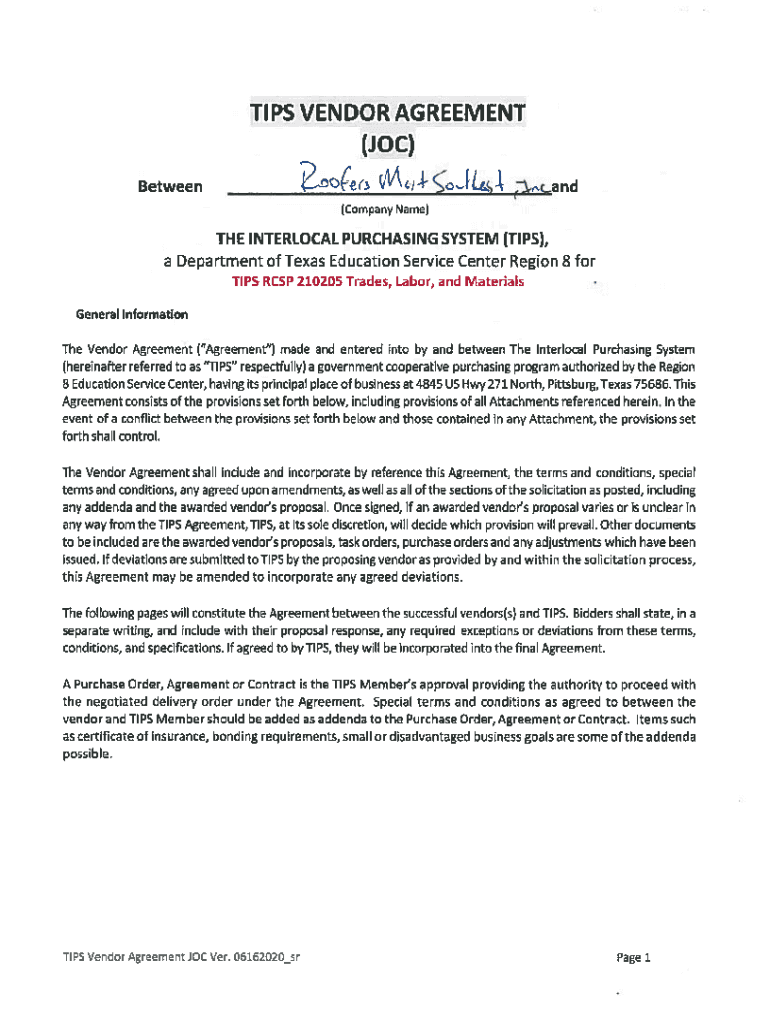 Meredith Barton Chief Operating Officer4/22/2021NOTICE TO MEMBERS REGARDING ATTRIBUTE RESPONSES TIPS VENDORS RESPOND TO ATTRIBUTE QUESTIONS AS PART OF TIPS COMPETITIVE SOLICITATION PROCESS. THE VENDORS