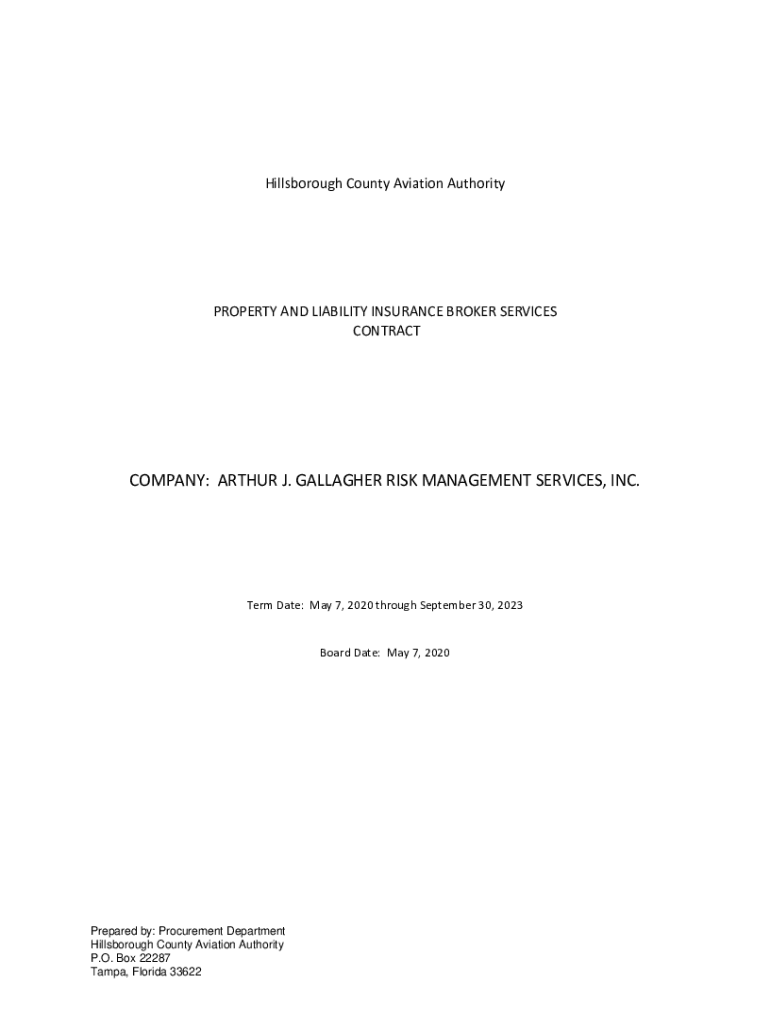 Hillsborough County Aviation AuthorityPROPERTY AND LIABILITY INSURANCE BROKER SERVICES