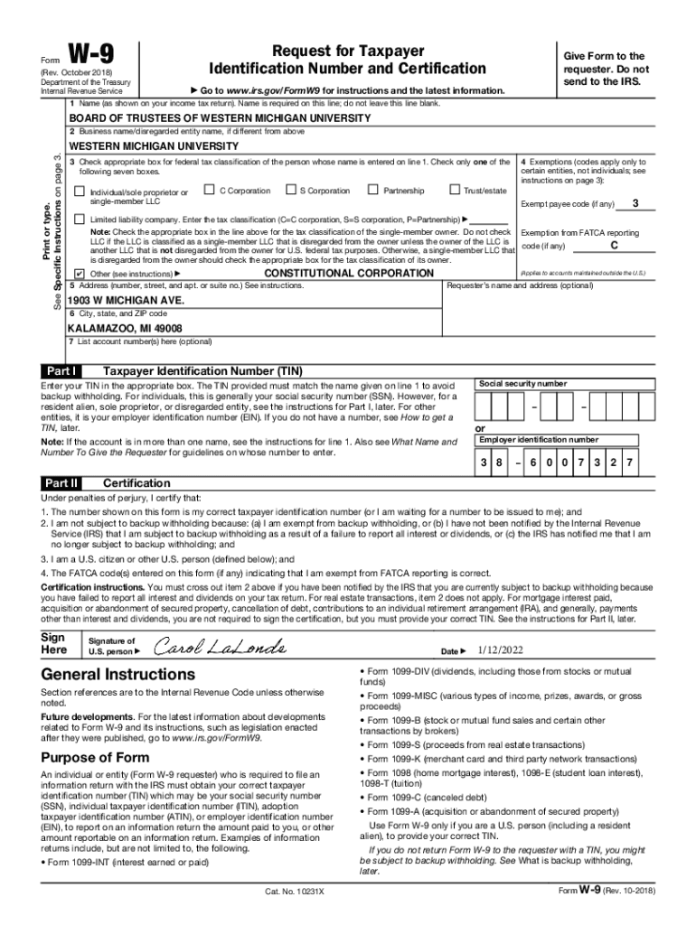W9Form (Rev. October 2018) Department of the Treasury Internal Revenue ServiceRequest for Taxpayer Identification Number and Certification Give Form to the requester. Do not send to the IRS. Go to