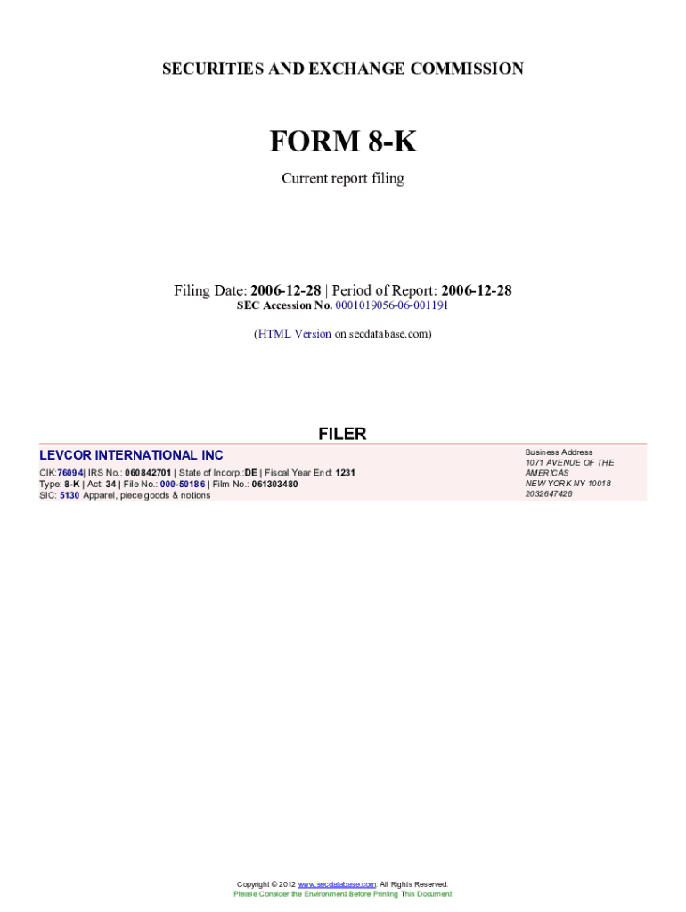 Get the free LEVCOR INTERNATIONAL INC (Form. Accession Number