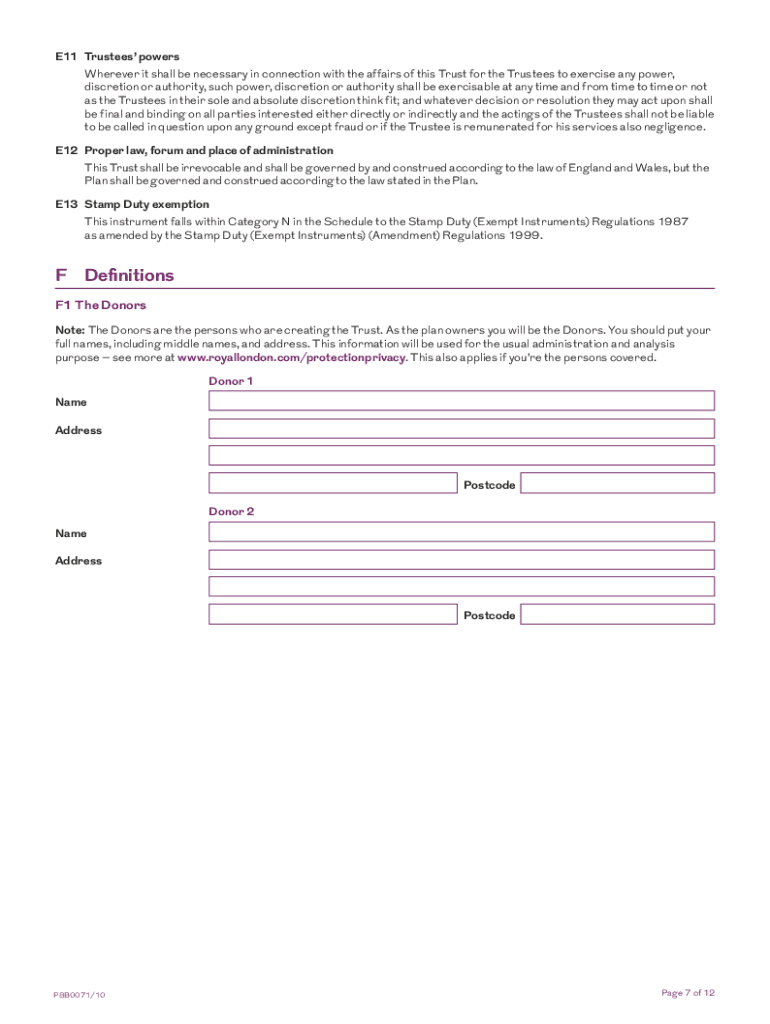 Protectionist Trust (Jointly Owned Plans Survivor To Benefit) Discretionary Important notes Please read these notes prior to completion. The following trust form should not be used for pension plans.