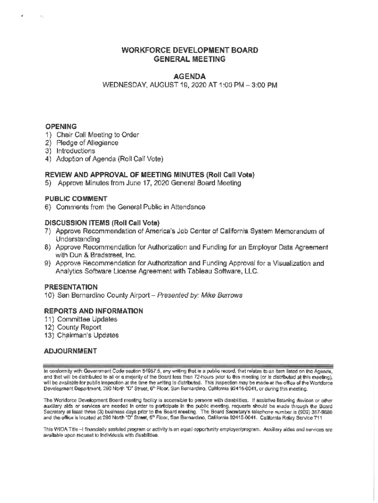 Get the free WORKFORCE DEVELOPMENT BOARD SPECIAL ... - wp.sbcounty.gov
