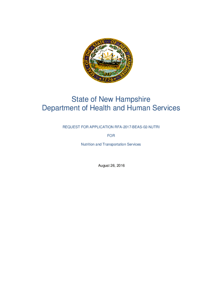 State of New Hampshire Department of Health and Human Services REQUEST FOR APPLICATION RFA2017BEAS02NUTRI FOR Nutrition and Transportation Services August 26, 2016New Hampshire Department of Health
