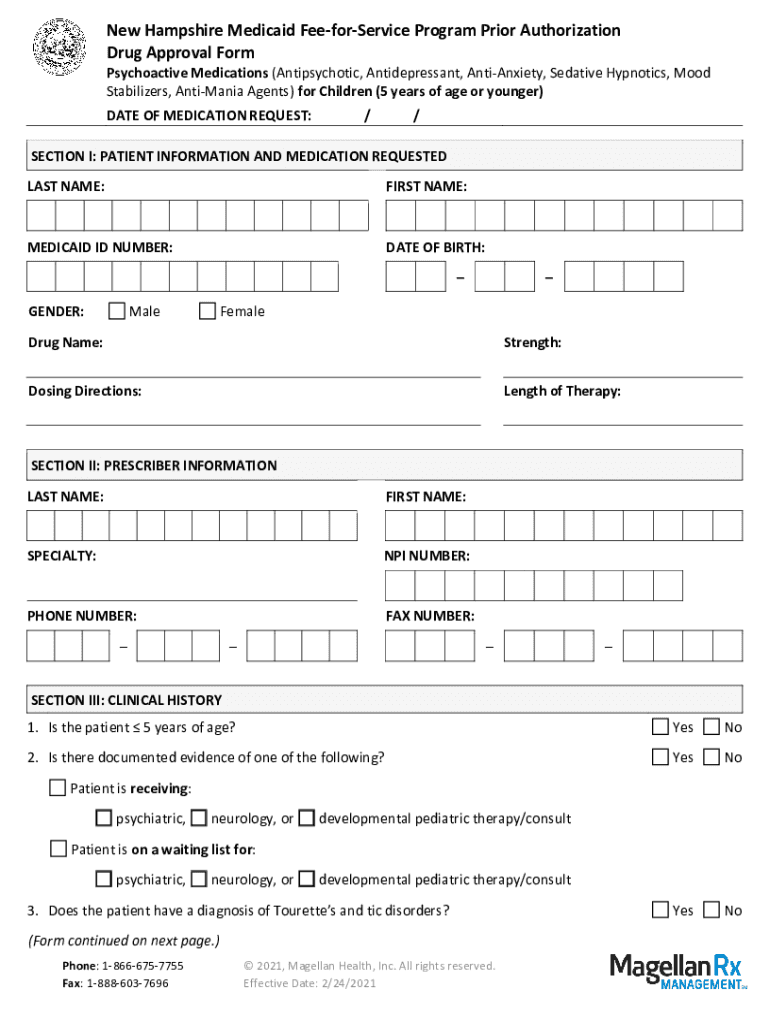 New Hampshire Medicaid FeeforService Program Prior Authorization Drug Approval FormPsychoactive Medications (Antipsychotic, Antidepressant, AntiAnxiety, Sedative Hypnotics, Mood Stabilizers, Animalia