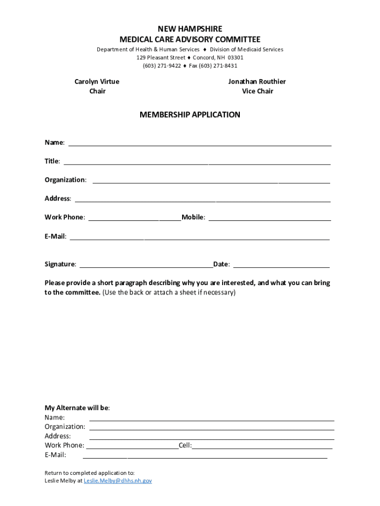 NEW HAMPSHIRE MEDICAL CARE ADVISORY COMMITTEE Department of Health & Human Services Division of Medicaid Services 129 Pleasant Street Concord, NH 03301 (603) 2719422 Fax (603) 2718431Carolyn Virtue