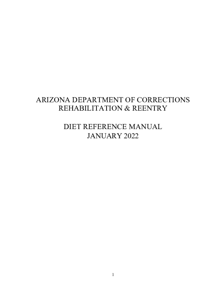 ARIZONA DEPARTMENT OF CORRECTIONS REHABILITATION & REENTRY DIET REFERENCE MANUAL JANUARY 20221TABLE OF CONTENTSADCRR Approval Form .............................................................................................................................................................
