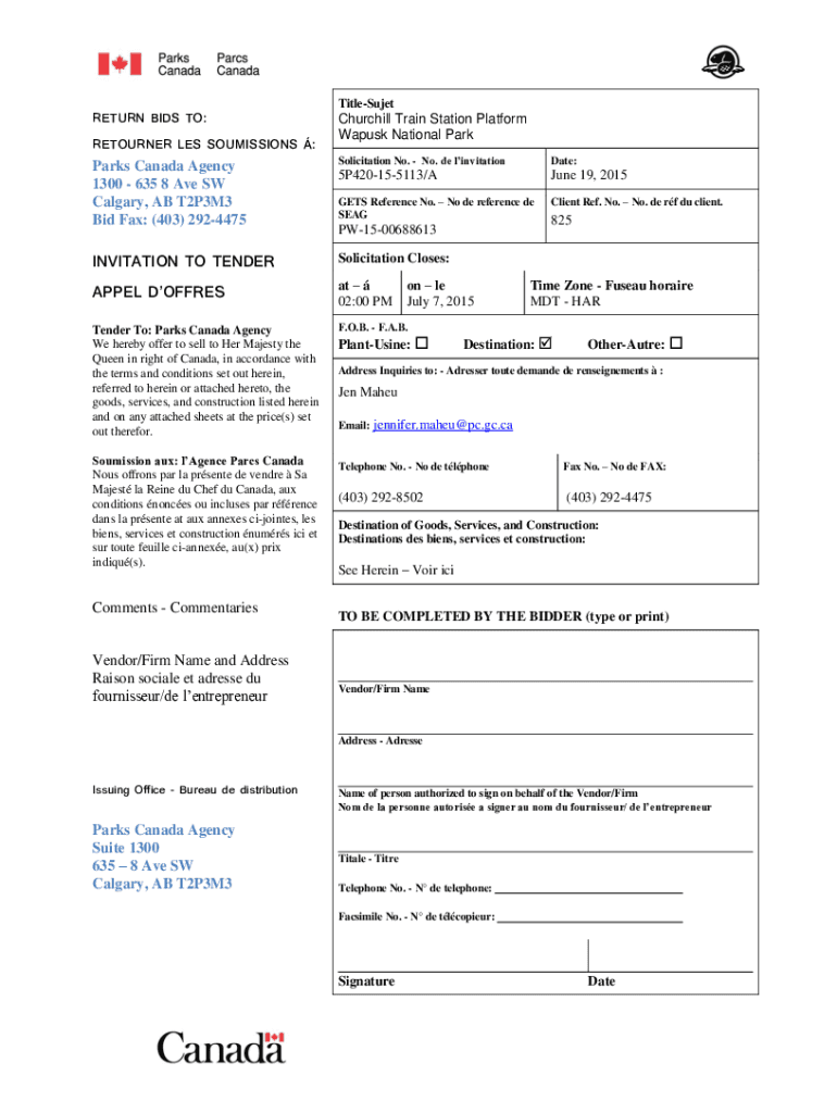 Get the free buyandsell.gc.cacdspublicRETURN BIDS TO: ENVOYER LES SOUMISSIONS: Parks Canada ...