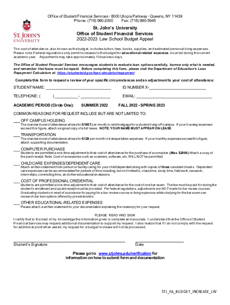 Get the free St. John's University Office of Student Financial Services 2022 ...