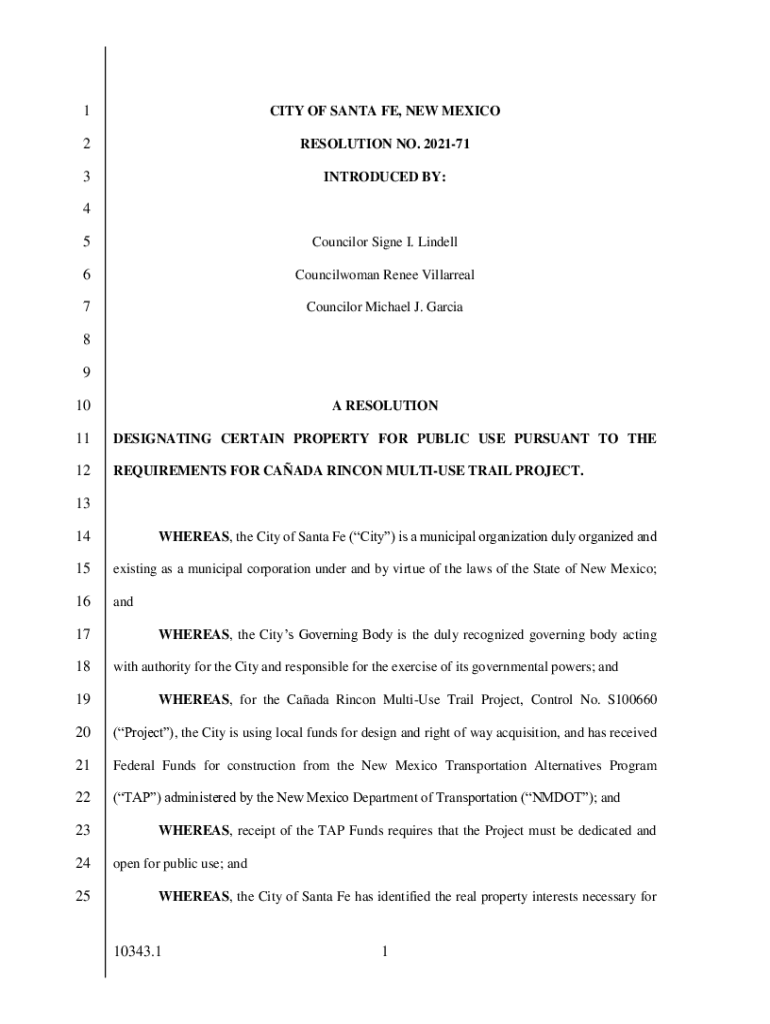 1CITY OF SANTA FE, NEW MEXICO2RESOLUTION NO. 2021713INTRODUCED BY:4 5Councilor Signed I. Lindell6Councilwoman Renee Villarreal7Councilor Michael J. Garcia8 9 10A RESOLUTION11DESIGNATING CERTAIN PROPERTY