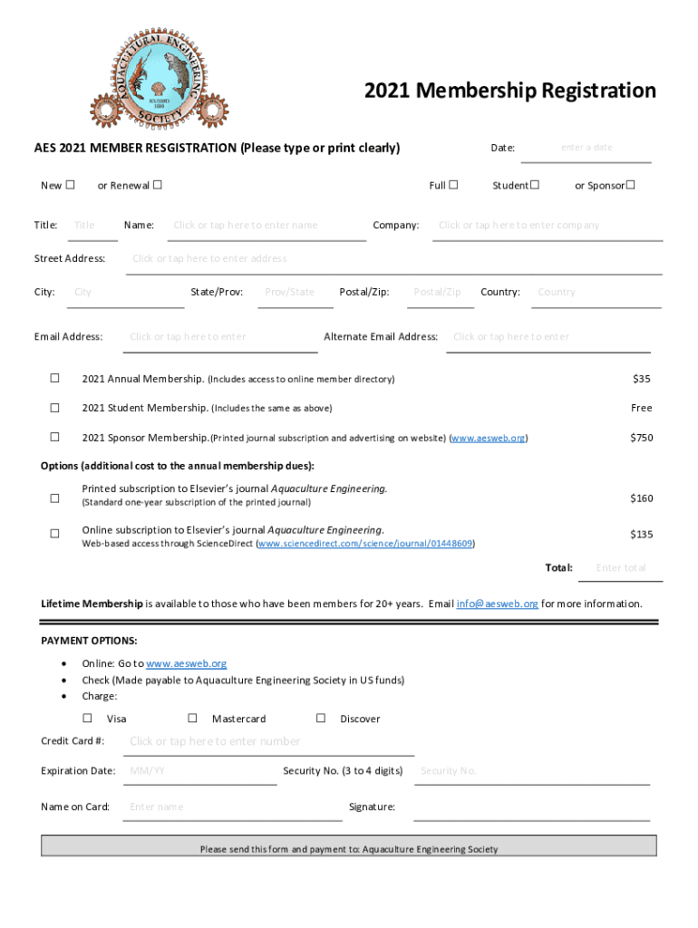 2021 Membership Registration AES 2021 MEMBER REGISTRATION (Please type or print clearly) New Title:or Renewal Filename:Street Address: City:Date: Full Click or tap here to enter accompany:enter a