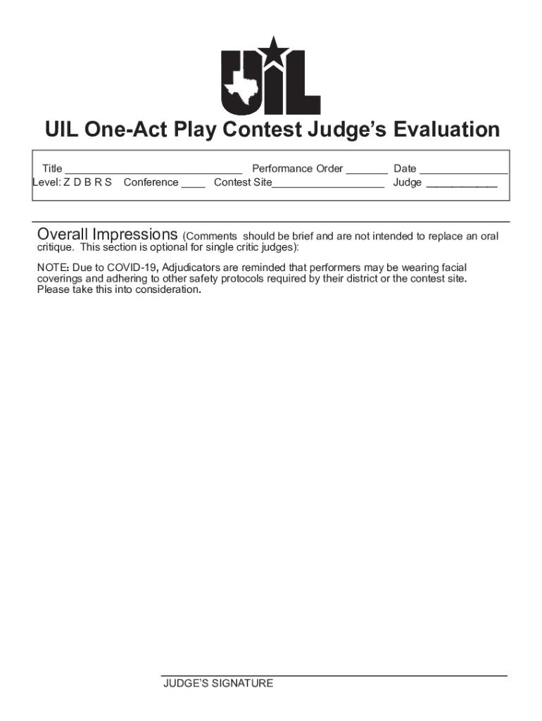 Get the free Online UIL One-Act Play Contest Judges Evaluation ...