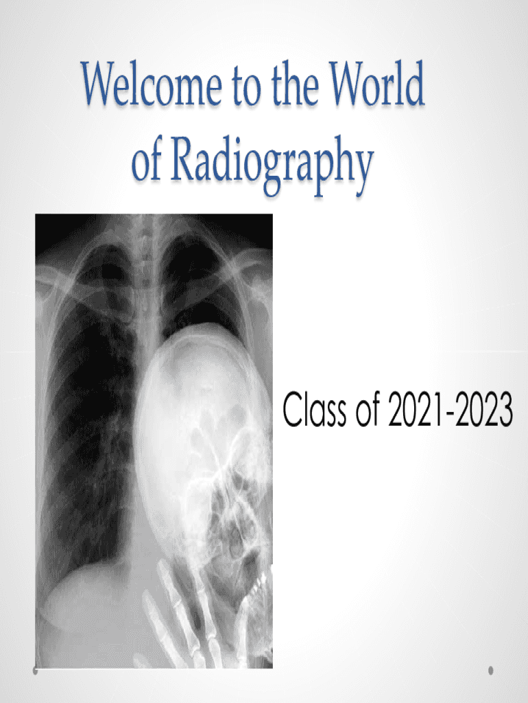 Welcome to the World of RadiographyClass of 20212023Introductions & Attendance Jim Mayhew, Program Director Coleen Nemetschek, Clinical Coordinator Nadia Almanac, Clinical Associate Tamra Pacheco,