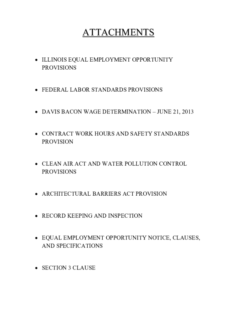 ATTACHMENTS ILLINOIS EQUAL EMPLOYMENT OPPORTUNITY PROVISIONS FEDERAL LABOR STANDARDS PROVISIONS DAVIS BACON WAGE DETERMINATION JUNE 21, 2013, CONTRACT WORK HOURS AND SAFETY STANDARDS PROVISION CLEAN