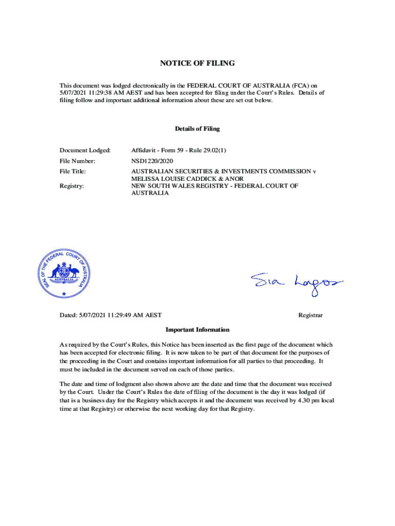 NOTICE OF FILING This document was lodged electronically in the FEDERAL COURT OF AUSTRALIA (FCA) on 5/07/2021 11:29:38 AM AEST and has been accepted for filing under the Courts Rules. Details of filing