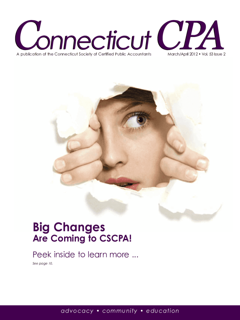 Connecticut CPA A publication of the Connecticut Society of Certified Public Accountants March/April 2012 Vol. 53 Issue 2Big Changes Are Coming to CSCA! Peek inside to learn more ... See page 10.www.cscpa.orgadvocacy