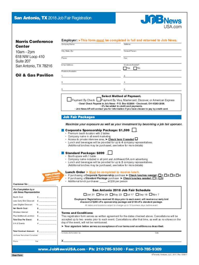 Discover San Antonio, TX 2018 Job Fair Registration Norris Conference Center 10am 2pm 618 NW Loop 410 Suite 207 San Antonio, TX 78216 Oil & Gas PavilionEmployer: This form must be completed in full