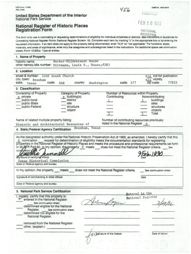SCOTT, COULOMB No10240018,United States Department of the Interior National Park Sen/Ice\'EX 1 6National Register of Historic Places Registration Format.\'O.MAL REG.\'STPRructioi in Guidelines (or