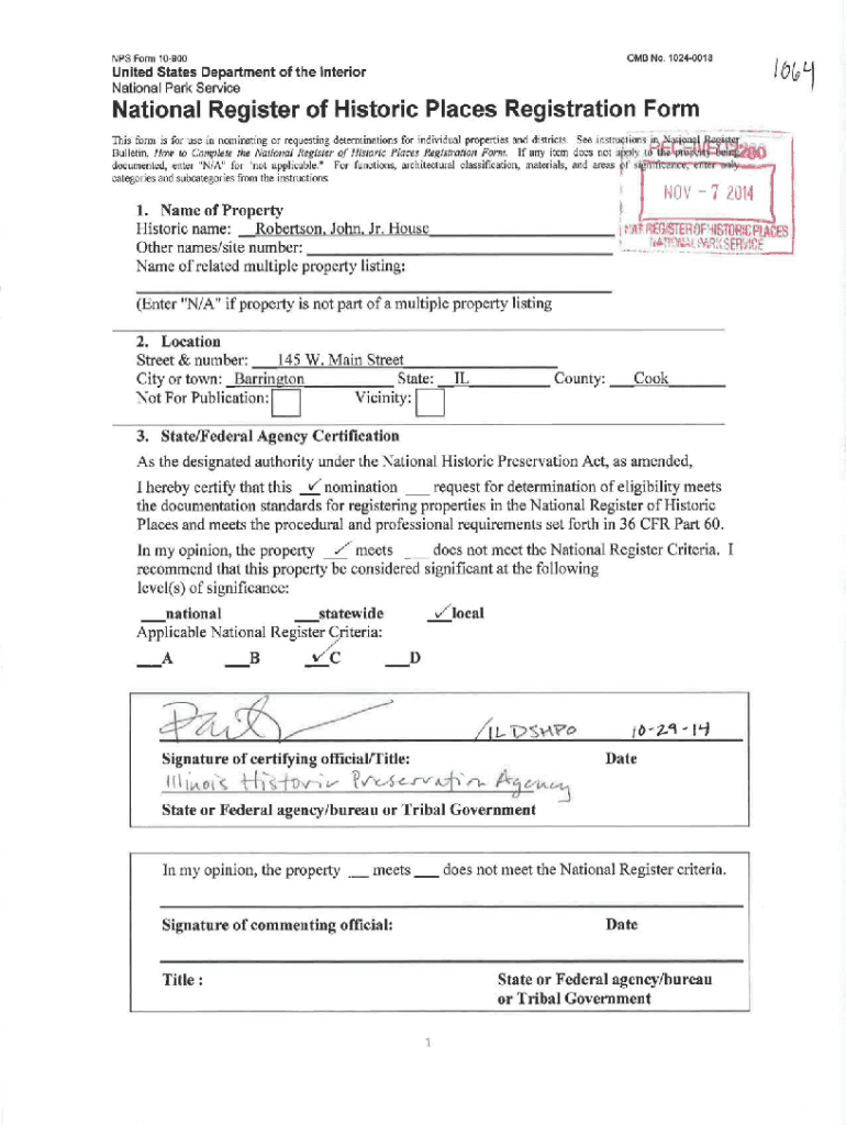 0 MB No. 10240018NPS Form 10900United States Department of the Interior National Park ServiceNational Register of Historic Places Registration Form This form is for use in nominating or requesting