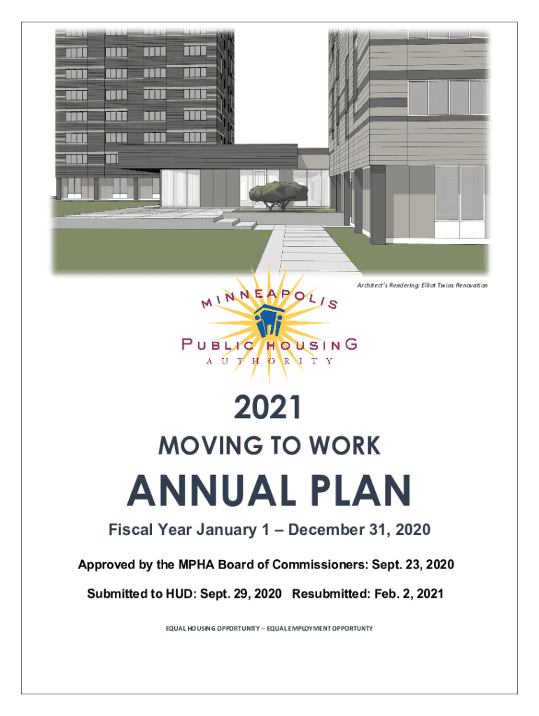 ArchitectsRendering:ElliotTwinsRenovation2021 MOVING TO WORKANNUAL PLAN Fiscal Year January 1 December 31, 2020, Approved by the MPH Board of Commissioners: Sept. 23, 2020 Submitted to HUD: Sept.