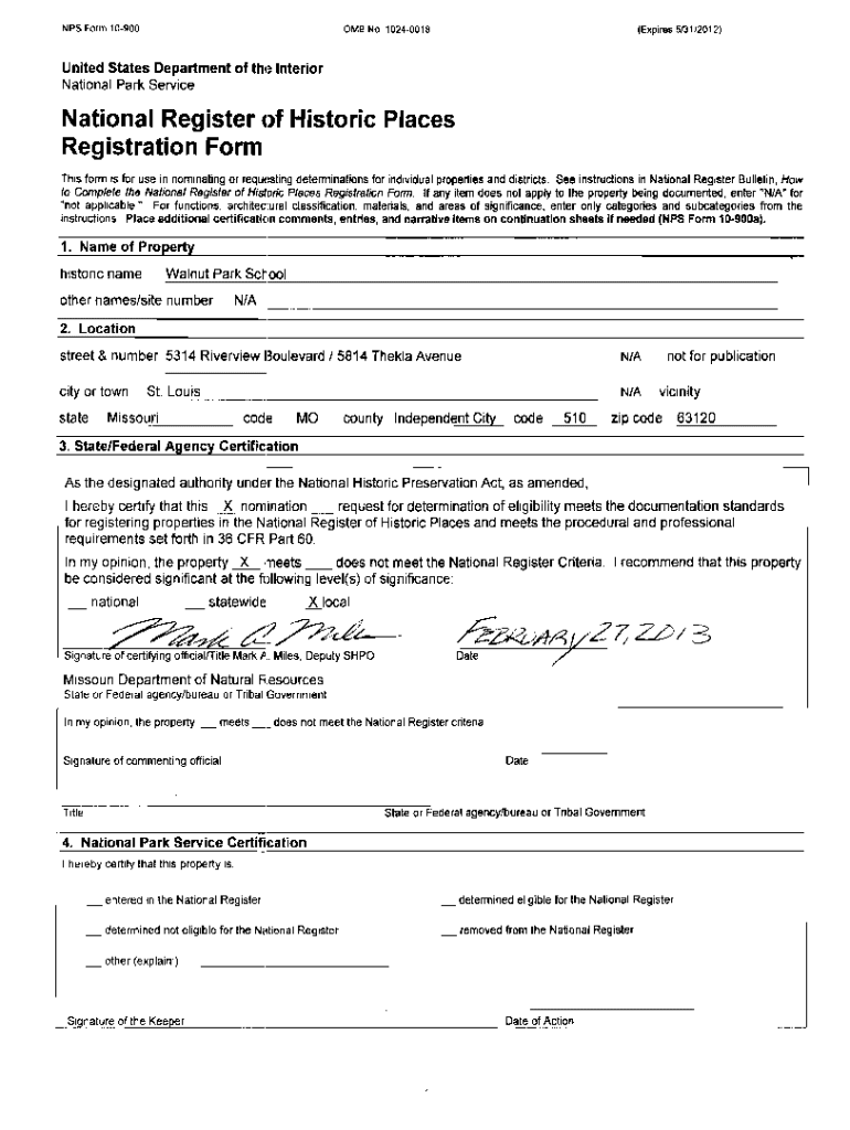 NPS Form 10900OMS No. 10240018(Expires 5/31/2012)United States Department of THT Interior National Park ServiceNational Register e)f Historic Places Registration Form This form is for use in nominating