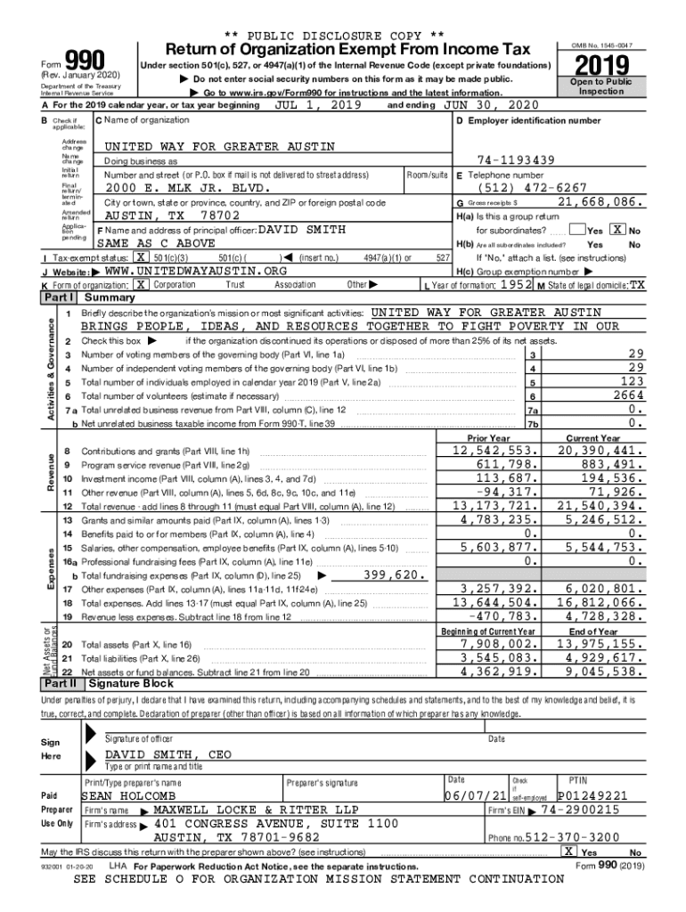 Get the free PDC - 2019 FORM 990-PUBLIC DISCLOSURE COPY UNITED WAY ATX (United Way for Greater Au...