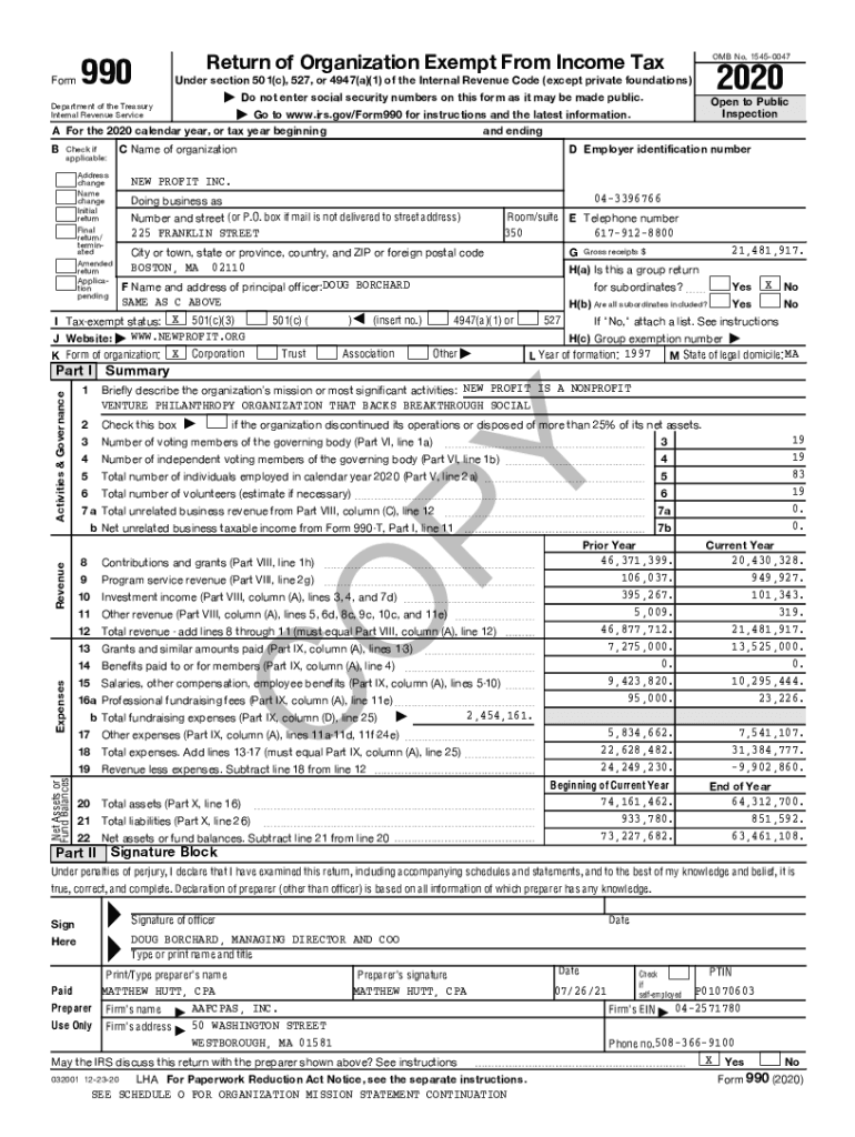 Nonprofit organizations and social enterprises are required to file New Profit Inc.