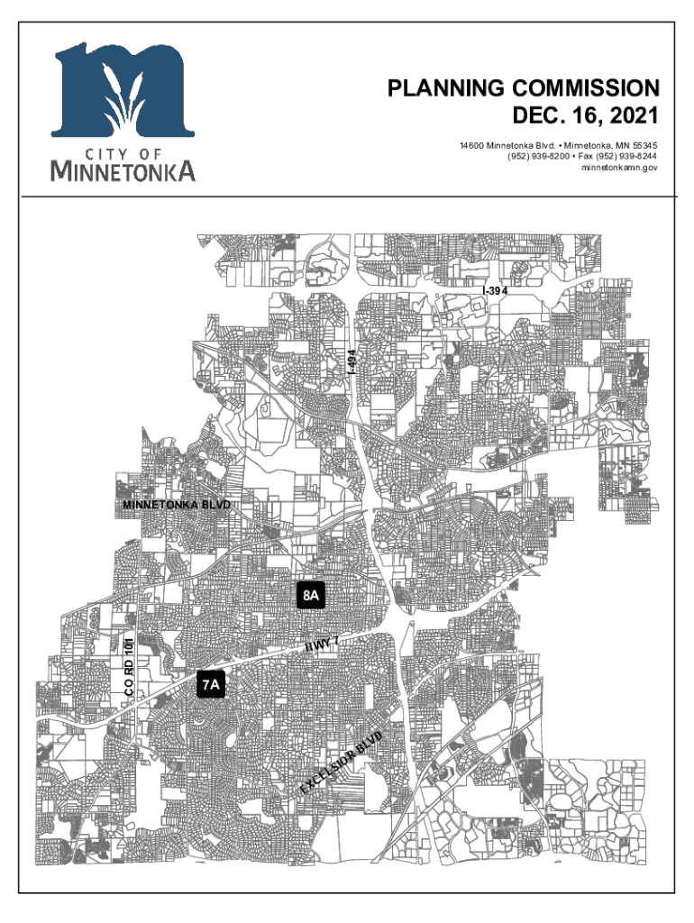 PLANNING COMMISSION DEC. 16, 2021 14600Mi net Oneal VD. Min net on,MN55345 (952)9398200Fax (952)9398244 min net ONDAM. GovI494I394MINNETONKA BLV DCO RD 1018A H WY77AC EXON SI L END Planning Commission