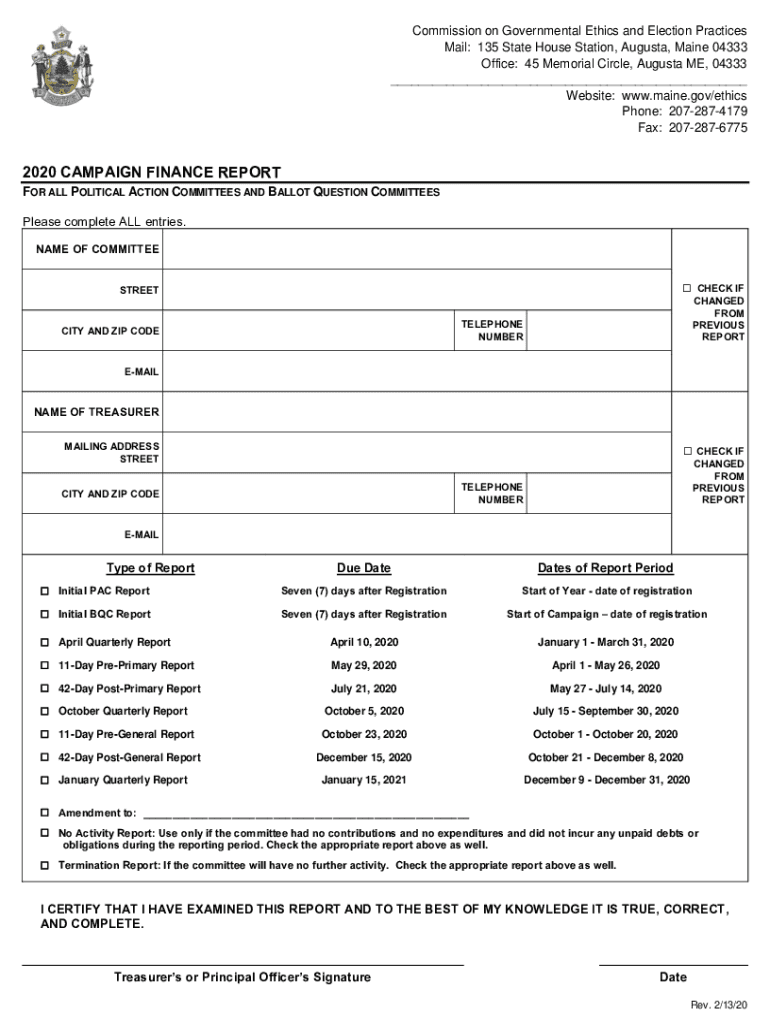 Commission on Governmental Ethics and Election Practices Mail: 135 State House Station, Augusta, Maine 04333 Office: 45 Memorial Circle, Augusta ME, 04333 ___ Website: www.maine.gov/ethics Phone: