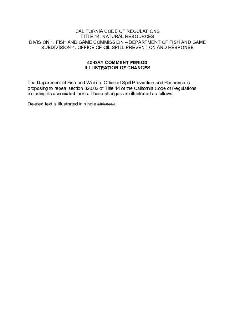CALIFORNIA CODE OF REGULATIONS TITLE 14. NATURAL RESOURCES DIVISION 1. FISH AND GAME COMMISSION DEPARTMENT OF FISH AND GAME SUBDIVISION 4. OFFICE OF OIL SPILL PREVENTION AND RESPONSE 45DAY COMMENT
