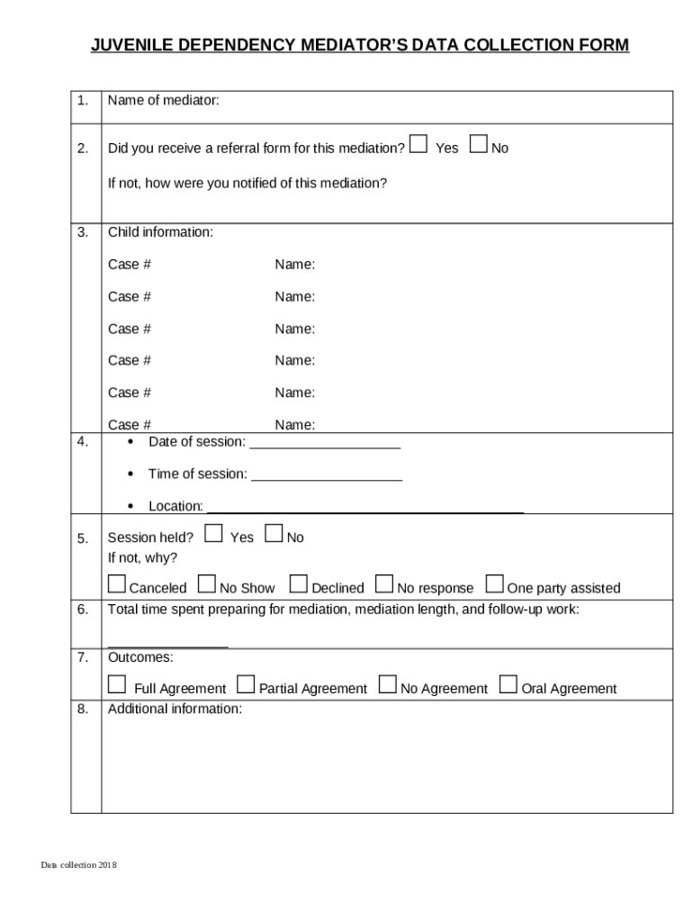 Frequently asked questions about the form JUVENILE DEPENDENCY MEDIATORS DATA COLLECTION